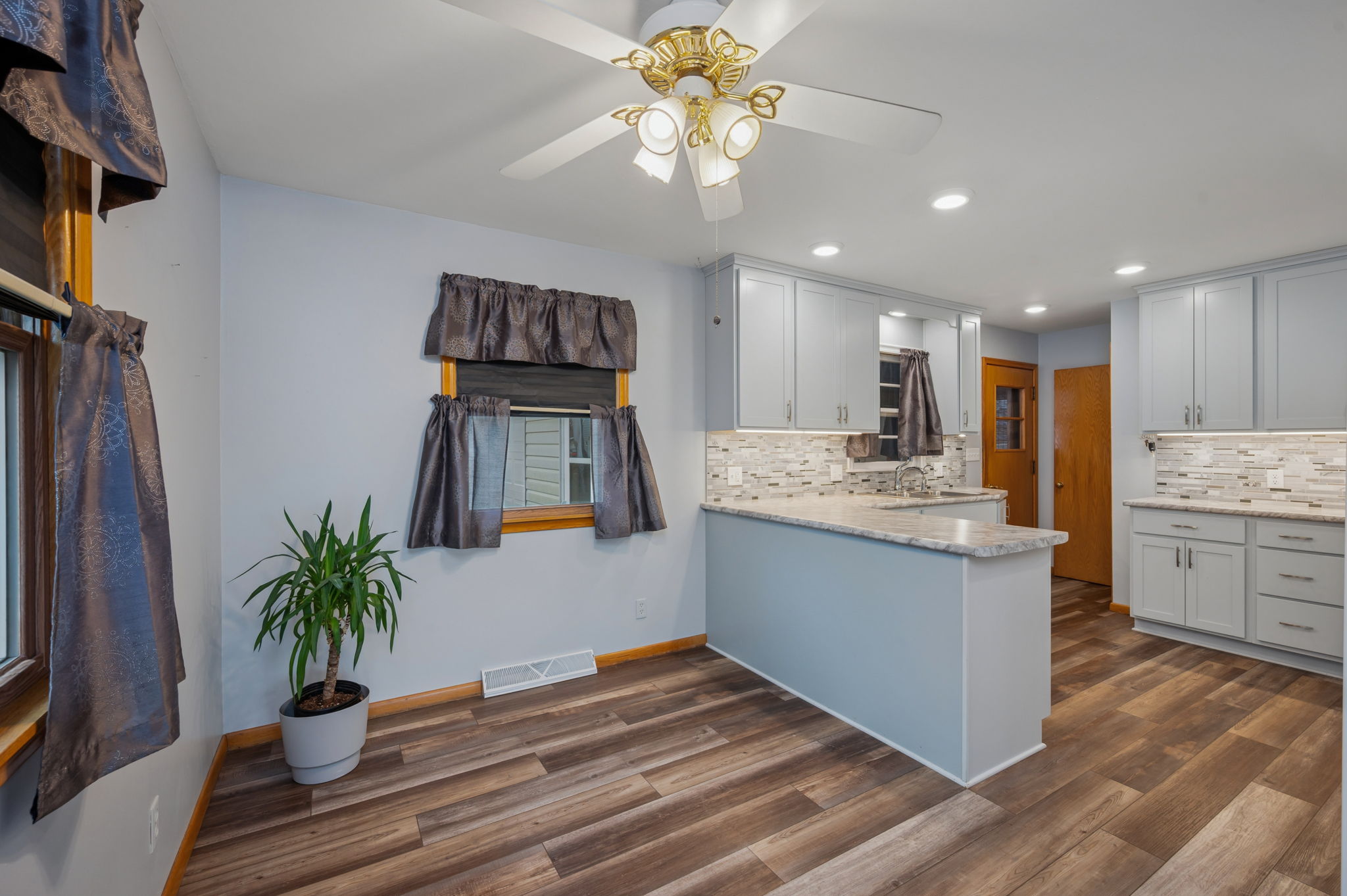 Charming 3 bed, 2 bath home with an attached 2-stall garage and porch linking the garage to the house. Spacious yard, newly renovated kitchen, main floor full bathroom, and upstairs laundry in one bedroom—with potential for a basement washer/dryer hookup.